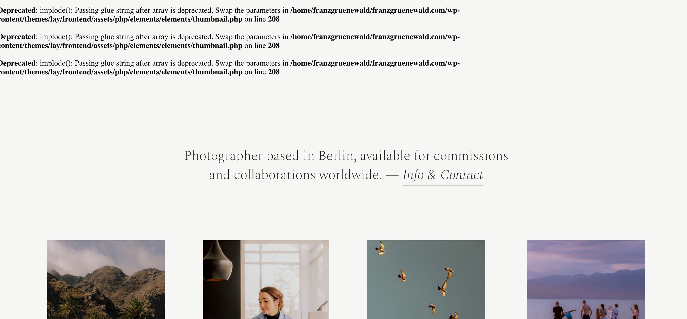 Deprecated: implode(): Passing glue string after array is deprecated. Swap the parameters in /home/franzgruenewald/franzgruenewald.com/wp-content/themes/lay/frontend/assets/php/elements/elements/thumbnail.php on line 208