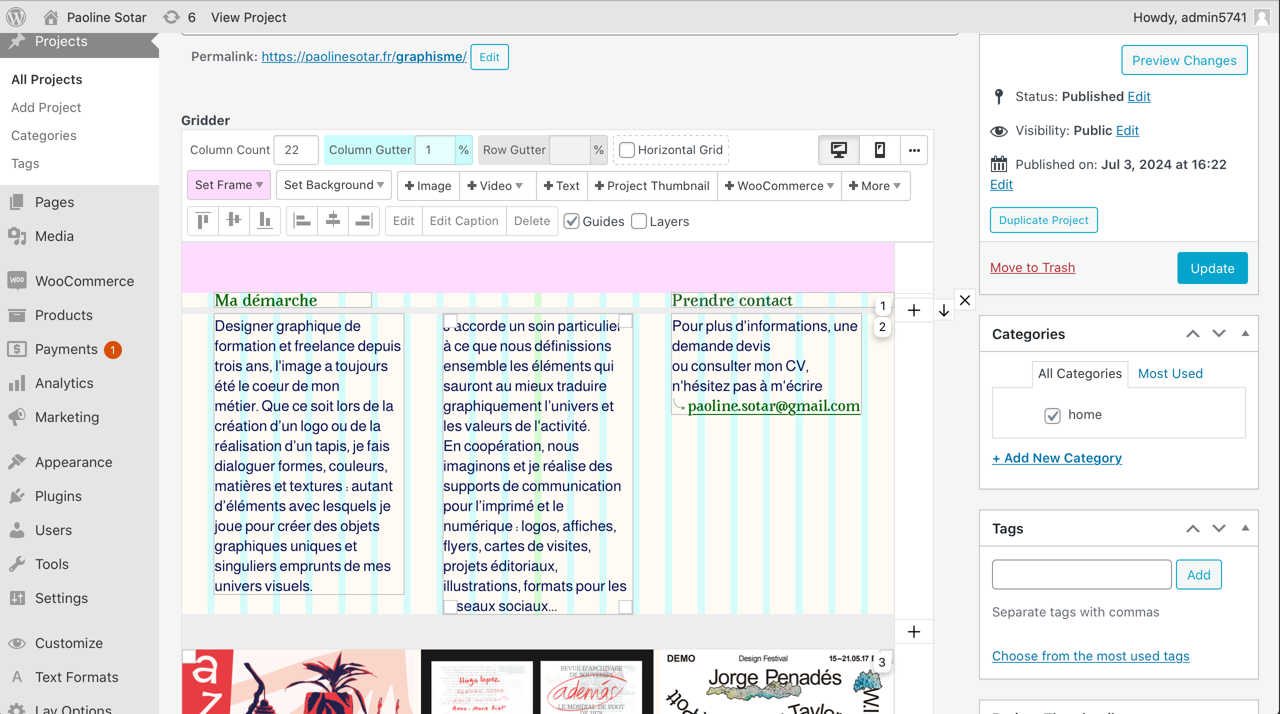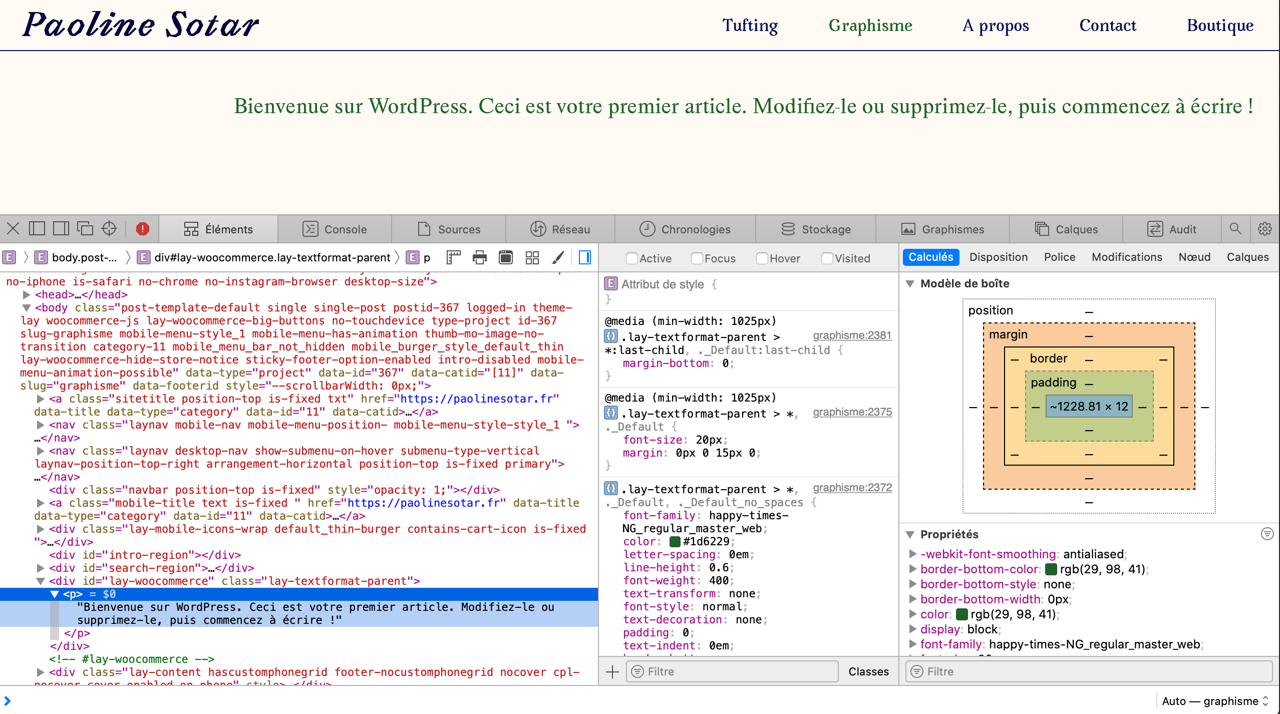 I have been trying for several days to install Woo Commerce on my site that I created with laytheme a few years ago but I am having an issue that I have not yet seen on the forum.I installed the Woo commerce plugin, modified the source code in cart & checkout and I was able to create my product sheets without problems. But I have a message that displays on my home page and a project page with the Wordpress welcome phrase. By going to these pages from Wordpress, I cannot delete the message which does not appear anywhere here. By inspecting the element from Chrome I find the trace of the message but I don't know what it corresponds to in the Wordpress editor.