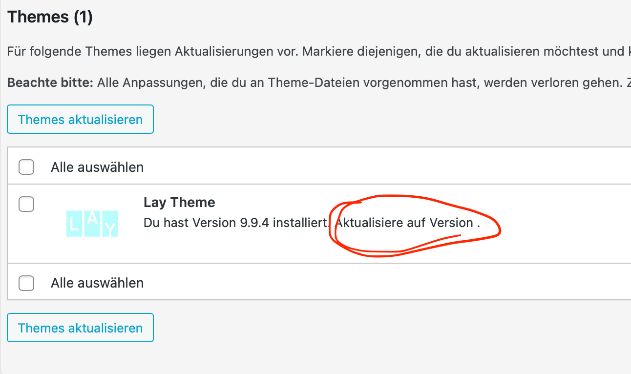 I also noticed, that under "Dashboard > Update" the number of the new version is missing, if that helps somehow: