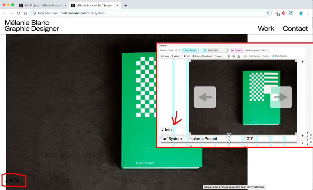 But I would like to put a text like "Info above" on the left side of the image. And when I add a text block the picture come on the left side and under the text.