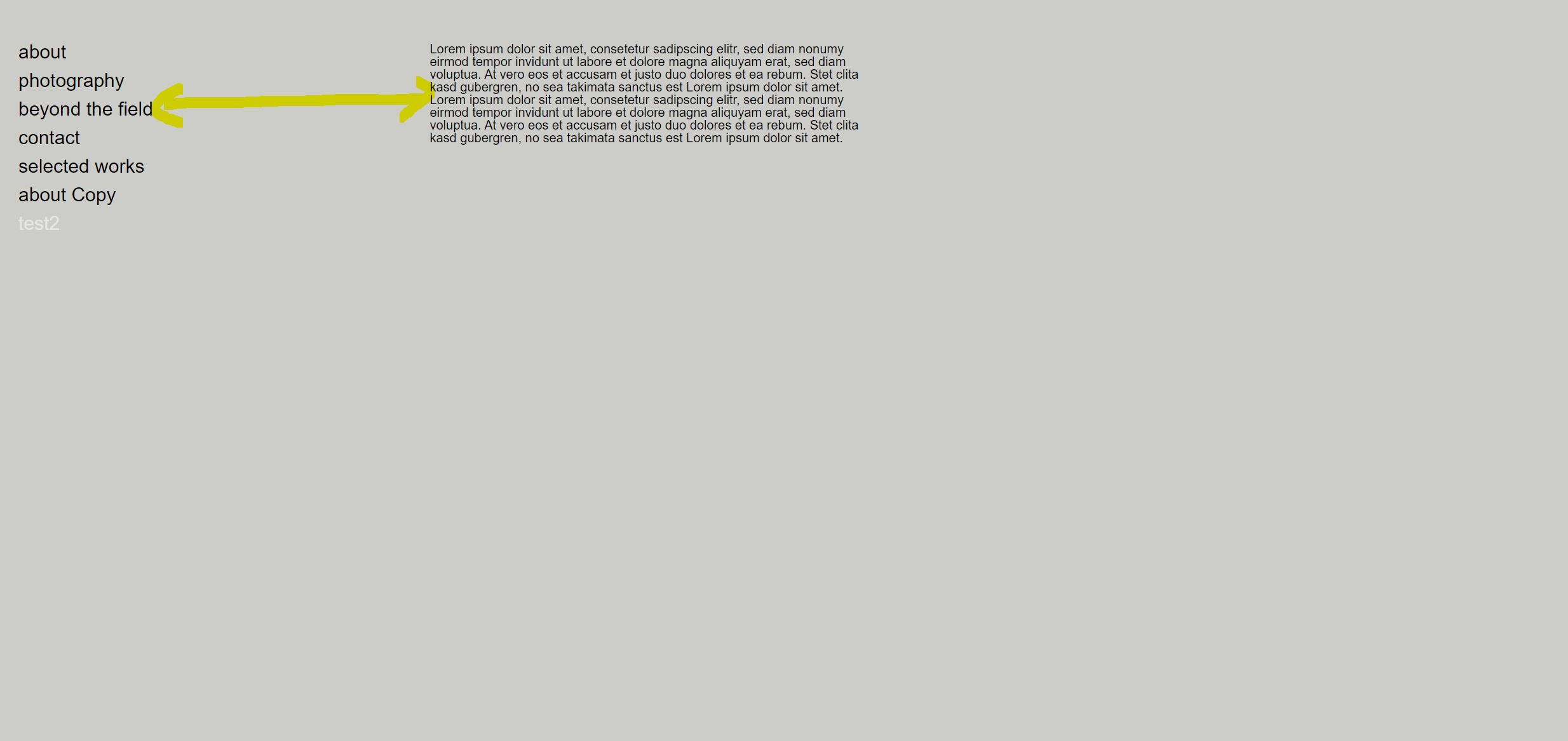 On my homepage i have a vertical menu. When i click one of the pages, the content (Text or picture) appears parallel to it with an specific distance (