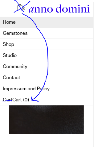 Last but not least i cannot remove the cart icon on the mobile version. For the mobile menu I have chosen a burger icon (my logo) with dropdown which works fine but the cart icon appears next to the burger insted of in the dropdown menu:
